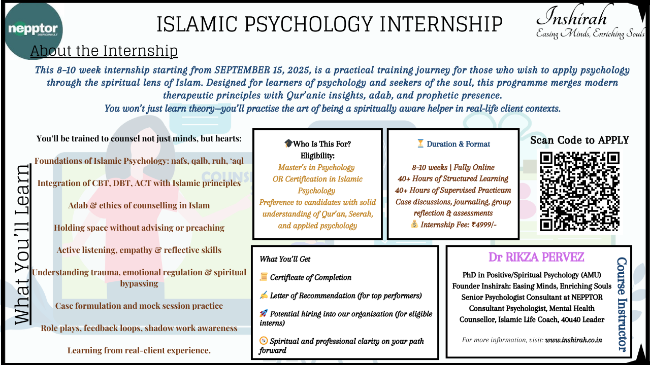 Psychology graduates interested in integrating Islamic principles into their counseling practice are encouraged to apply.